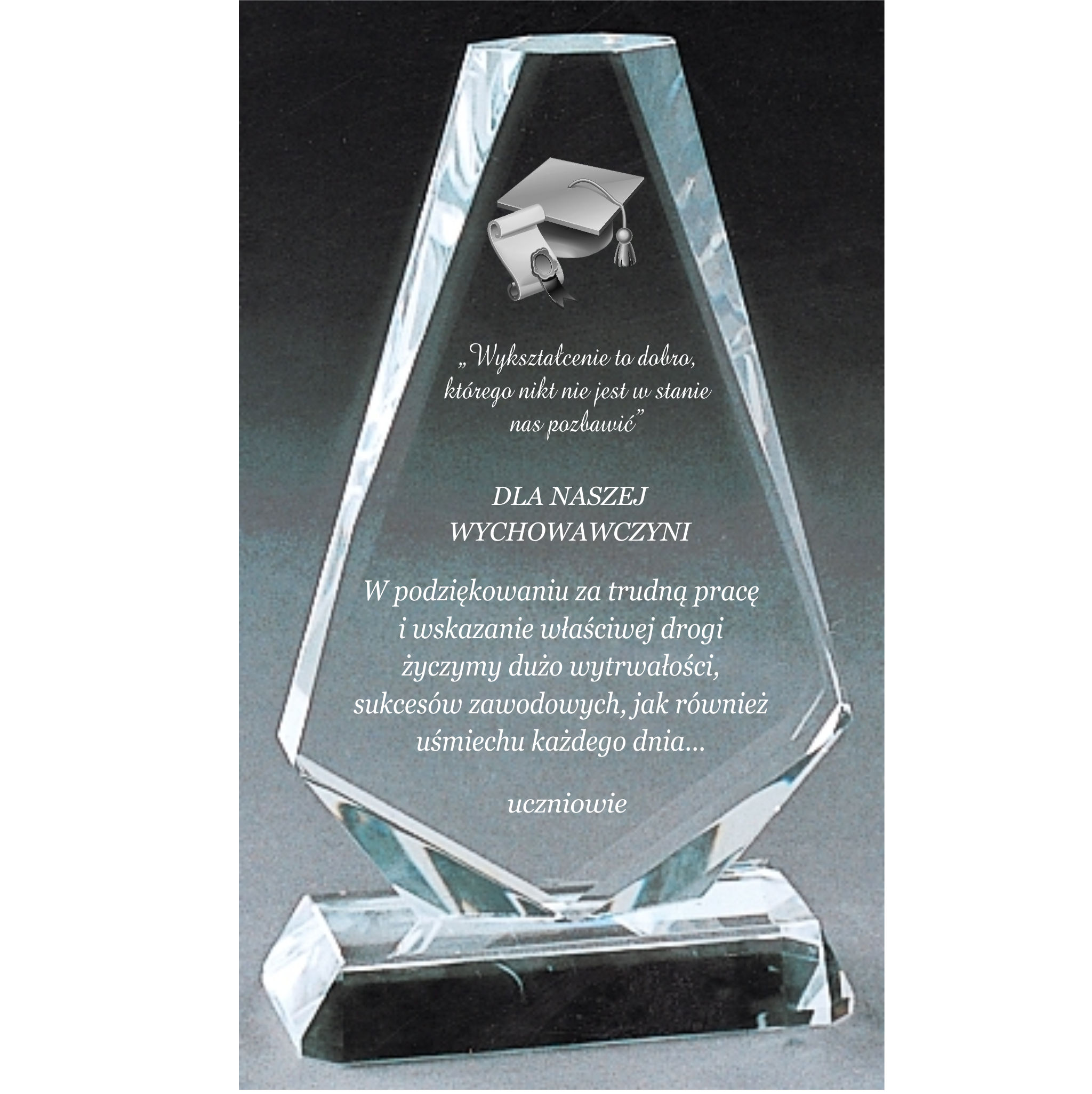 Elegancka i oryginalnie wyglądająca statuetka kryształowa to wspaniały pomysł na prezent dla nauczyciela z okazji Dnia Nauczyciela.